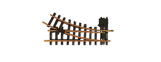 LGB-Weichen sind stabil und für einen jahrelangen Freilandbetrieb ausgelegt. Gerades Gleis: 300 mm. Abzweigendes Gleis: rechts, R1, 30°. Der Antrieb kann rechts oder links montiert werden. Nachrüstbar mit dem elektrischen LGB-Weichenantrieb (LGB 12010).