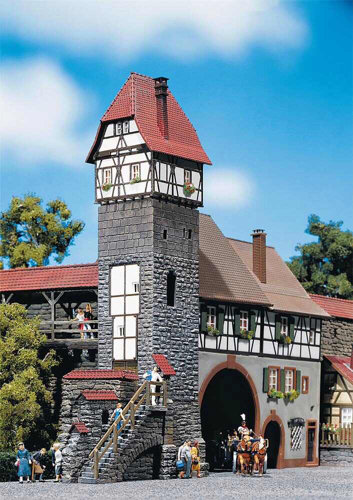 Altstadt-Turmhaus mit angebautem Treppenaufgang. Eigenständig oder in Verbindung mit den Artikeln 130401-130404 verwendbar.