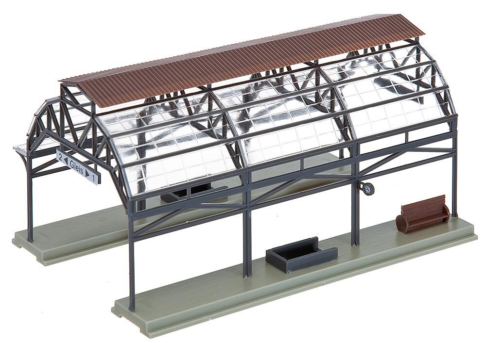Die glasüberdachte Hallenkonstruktion ist für zweispurigen Verkehr geeignet. Die Halle kann auch mehrfach hintereinander und nebeneinander gebaut werden. Als Bahnsteig eignet sich Art. 222119.