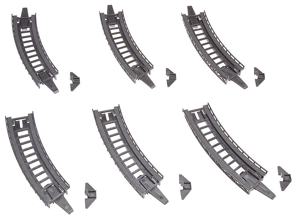 6 Gleisbetten mit Gitterkonstruktion, R 2, 30°. Passend für alle Gleisfabrikate.