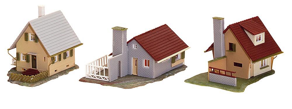 Dieser Bausatz enthält: 129 Einzelteile in 9 Farben, Fensterteile, 3 Gardinenmasken und 1 Bauanleitung. Verwenden Sie zum Basteln FALLER - Plastikkleber.