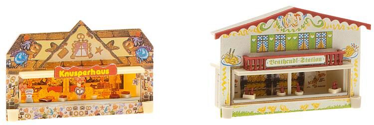 2 weitere Buden, als Knusperhäuschen und Brathendl-Station zu gestalten. Es liegen Frontdekorbilder und Ausschmückungsteile bei. Die Stände sind mit Art. 180671 beleuchtbar.