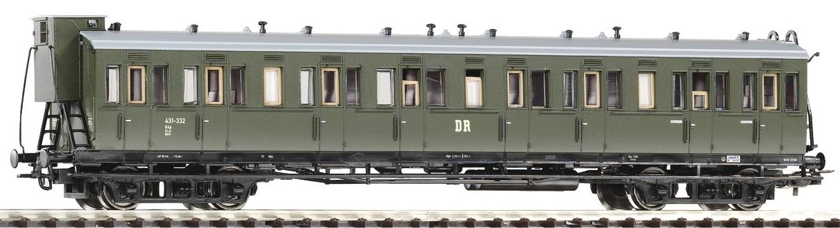 Abteilwagen B4p 2. Klasse der DR Ep. IIIIm Jahre 1899 begann die Sächsische Staatseisenbahn mit dem Bau von reinen 2. Klasse Wagen, welche für den Personen- und Eilzugdienst bestimmt waren. Die Anordnung und die Anzahl der Abteile und Aborte bestimmten, wie schon bei den vorangegangenen Wagen, die Wagenkastenlänge. Die Wagen hatten insgesamt acht Abteile der Polsterklasse und jeweils drei Aborte zwischen den Sitzabteilen. Die Beleuchtung wurde mittels unter den Wagen angebrachten Gasbehältern bewerkstelligt. Das Drehgestell entsprach der preußischen Regelbauart mit gepreßten Seitenwangen. Die Heizung wurde mittels Dampf von den Lokomotiven betrieben. Einige Wagen erhielten hochgesetzte Bremserhäuser. Nach dem Zweiten Weltkrieg verblieben die Wagen in den unterschiedlichsten Teilen Europas und wurden sogar noch vereinzelt bis in die 70er Jahre eingesetzt.
