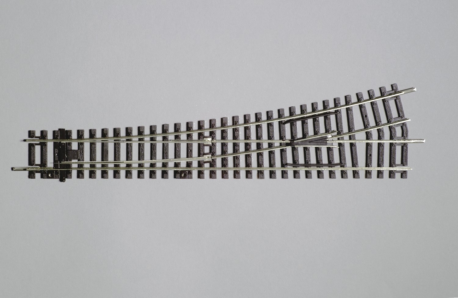 Weiche, links, Winkel 15 grad, Gerades Gleis = G239, Abzweigung = R9, Handbetrieb mit Positionierung, passender Elektroantrieb = # 55271