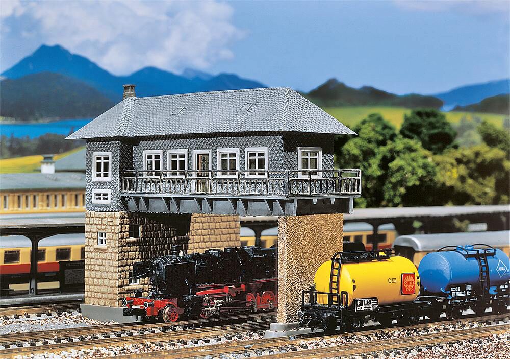 3 Gleise überspannendes Reiterstellwerk.