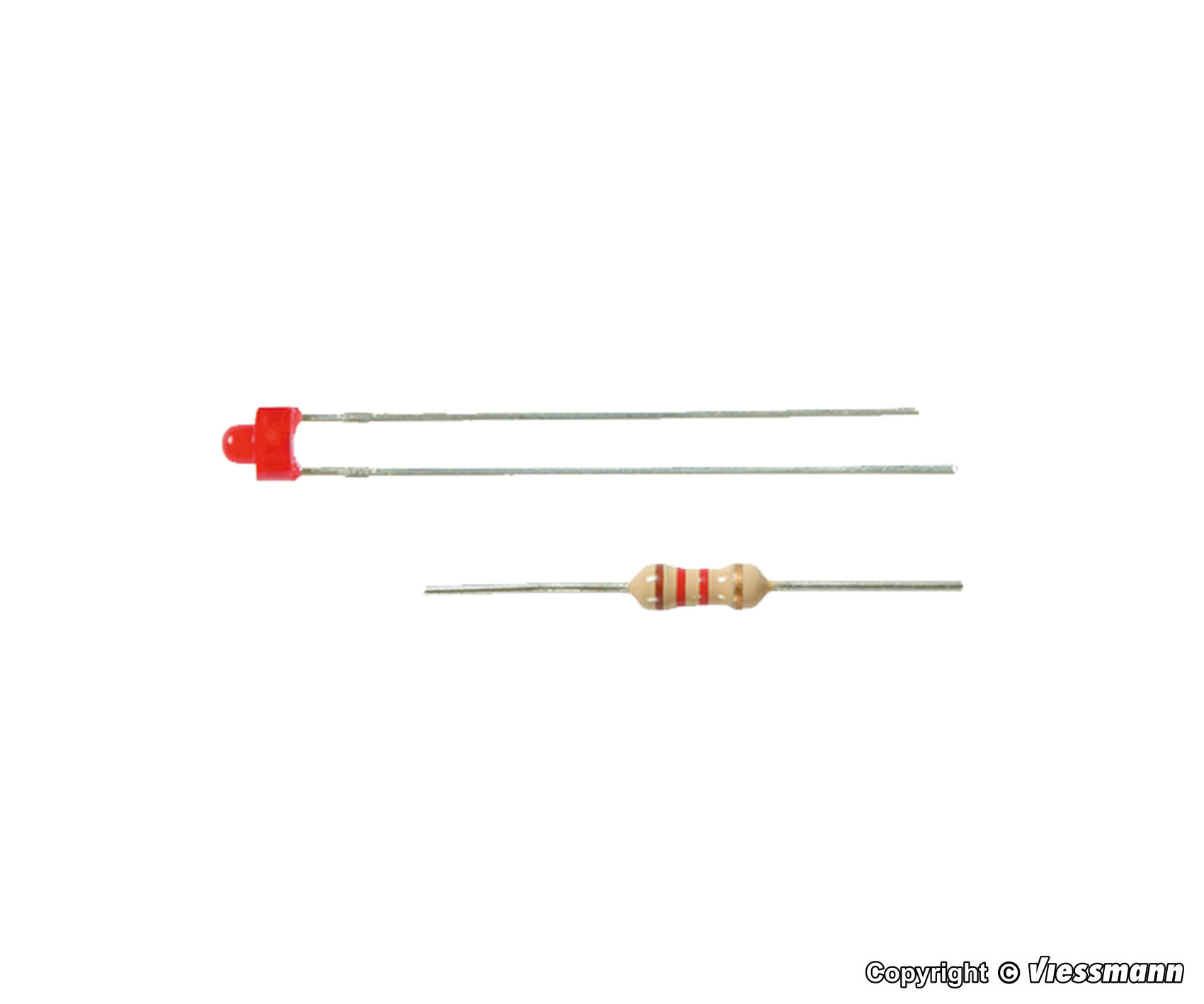 LED rot Ø 1,8 mm, inkl. Vorwiderstände, 3 Stück