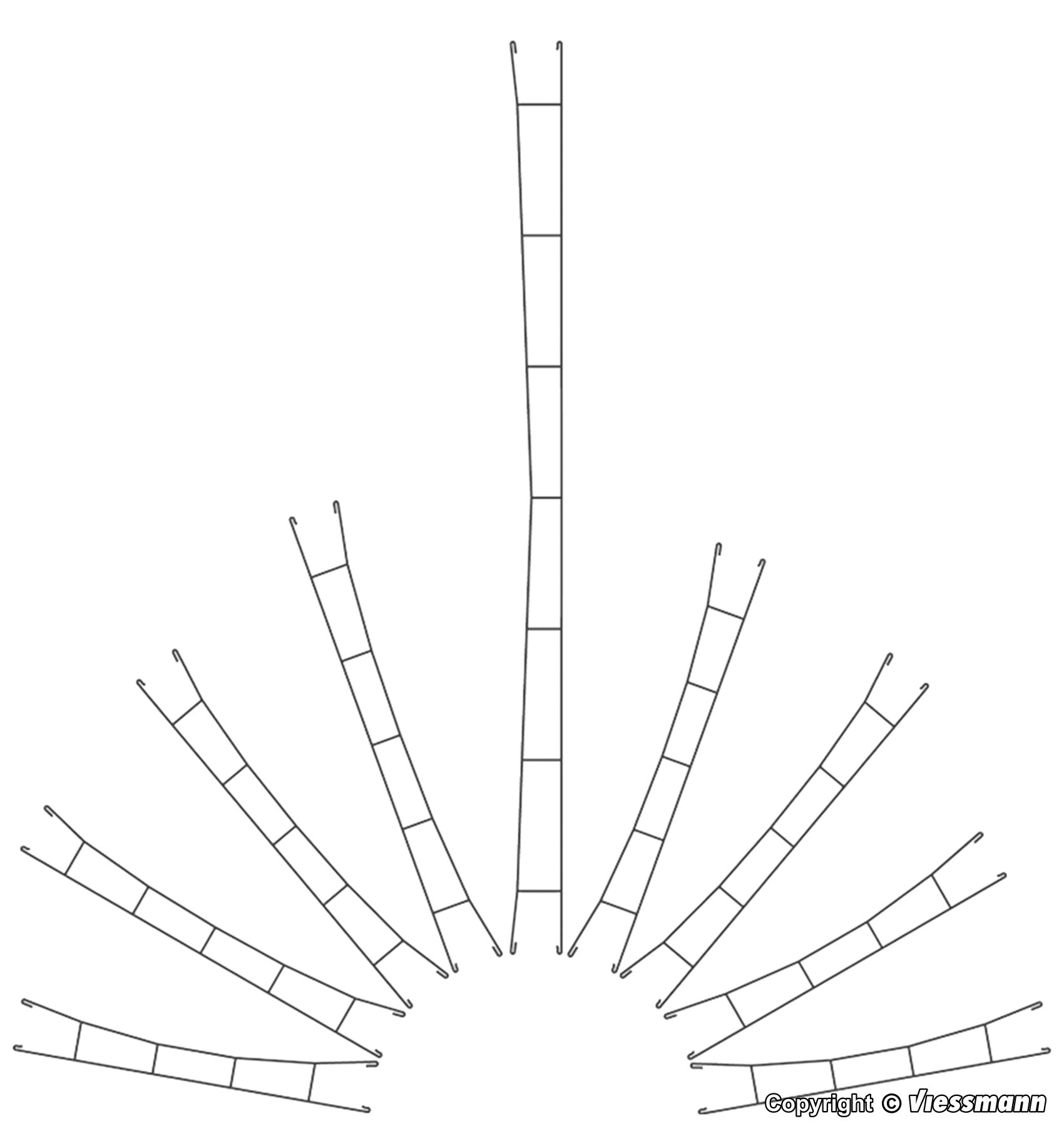 Fertig konfektionierter Fahrdraht mit Ösen zum einfachen Einhängen am Ausleger. Die unterschiedlichen Längen sind den gängigen Gleissystemen der Gleishersteller angepasst. Fahrdraht: Ø 0,6 mm. Geeignet für Märklin C-Gleis (Gleismittenradius 437,5 mm), Märklin M-Gleis (Gleismittenradius 437,4 mm) und Roco LINE + Roco geoLINE (Gleismittenradius 434,5 mm).