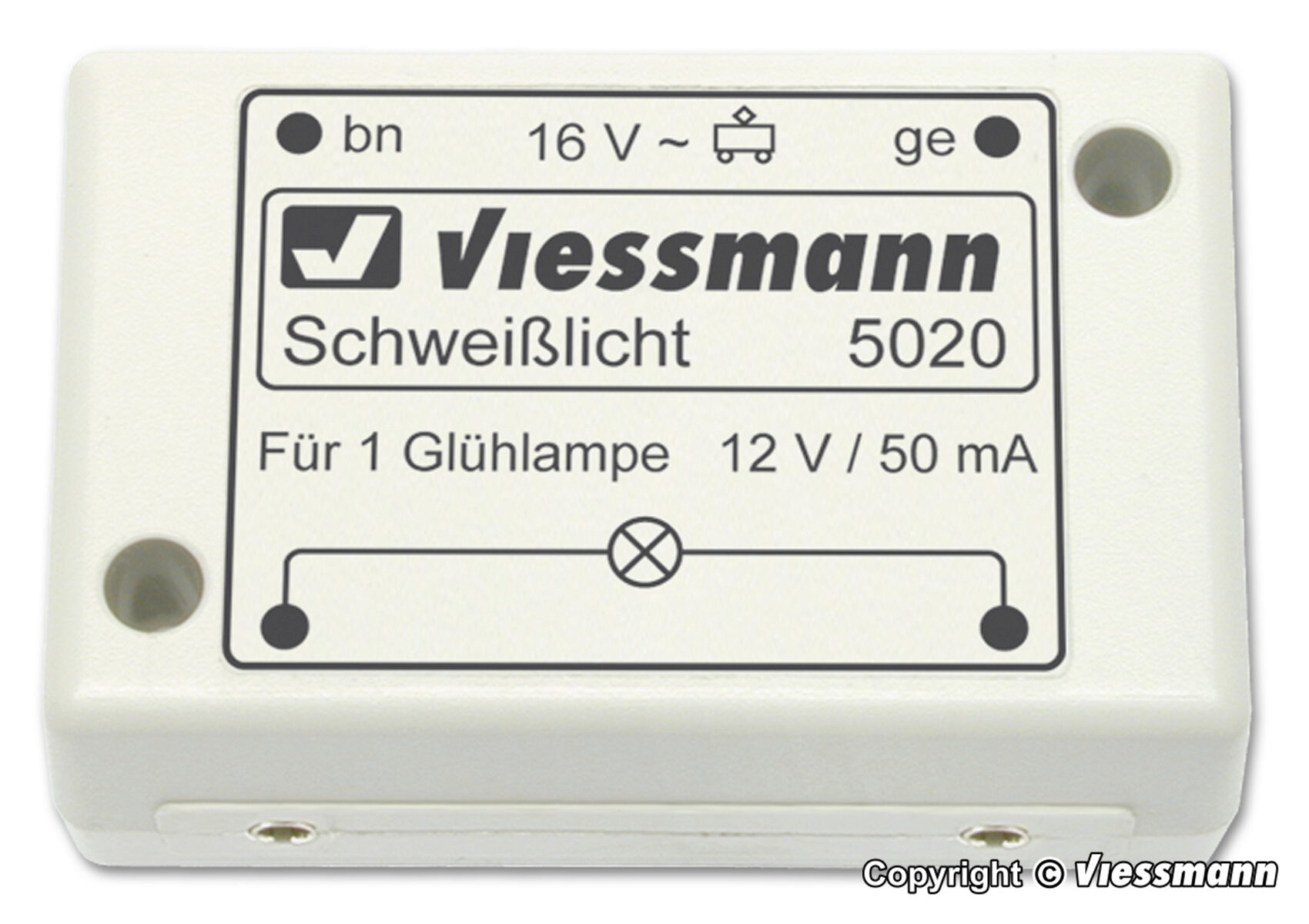Dieses Modul bringt die beiliegende blaue Glühlampe so zum Flackern, dass der täuschend echte Eindruck von flackerndem Schweißlicht entsteht. Für einen besonders realistischen Effekt sorgt der eingebaute Intervallschalter, der das Flackern automatisch durch Pausen unterbricht. Das Schweißlicht ist für alle Spurgrößen geeignet. Ideal zum Einbau z. B. in Betriebswerke, Werkstätten und Fabrikhallen. Ersatzglühlampe Art. 3500.