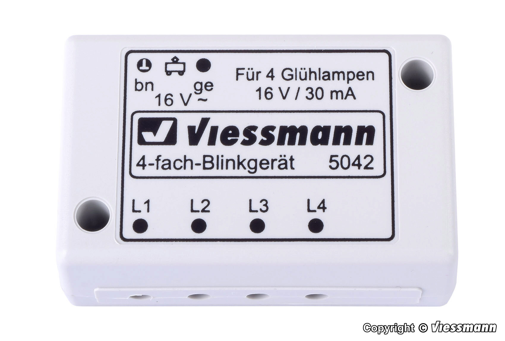 Diese Blinkelektronik ist geeignet, um Modellfahrzeuge mit sehr realistisch wirkendem Blinklicht auszustatten. Die spezielle Blinkschaltung wird unter der Anlage montiert und erzeugt den täuschend echten Eindruck von rotierendem Rundumlicht. Betrieb nur mit Wechselspannung zulässig.Alle 4 anschließbaren Glühlampen blinken unabhängig voneinander. Ersatzglühlampen Art. 3506 (2x blau), Art. 3507 (2x gelb), Art. 3508 (2x rot) und Art. 3509 (2x klar).