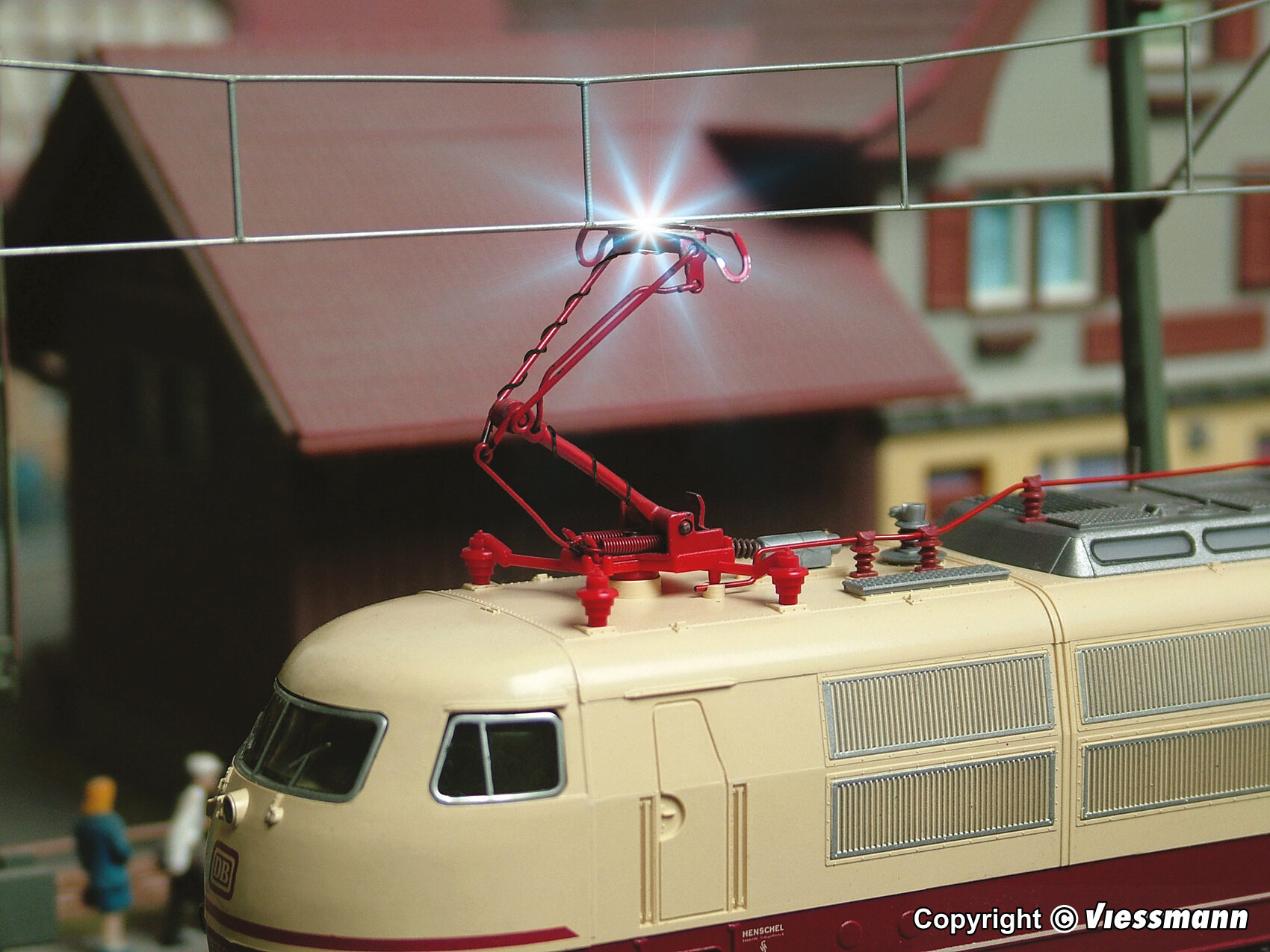 Dieser Effekt simuliert das Funkenschlagen am Pantographen einer fahrenden E-Lok. Er besteht aus einer sehr kleinen Elektronik und einer blauen Micro-LED. Zum einfachen Einbau in E-Loks der Baugröße H0.
