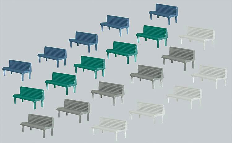 Das Sortiment umfasst 20 Bänke in verschiedenen Farben.