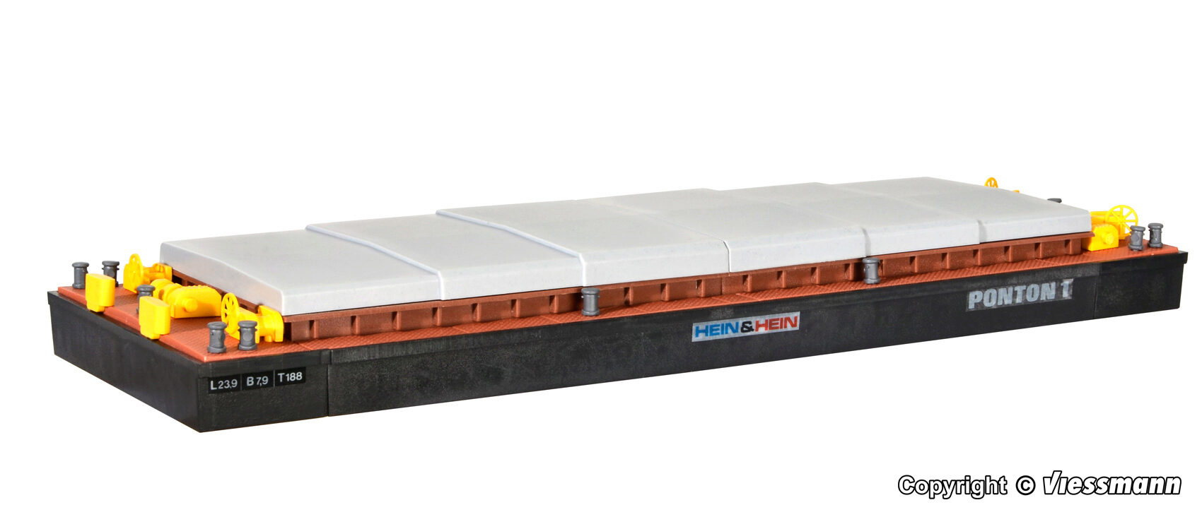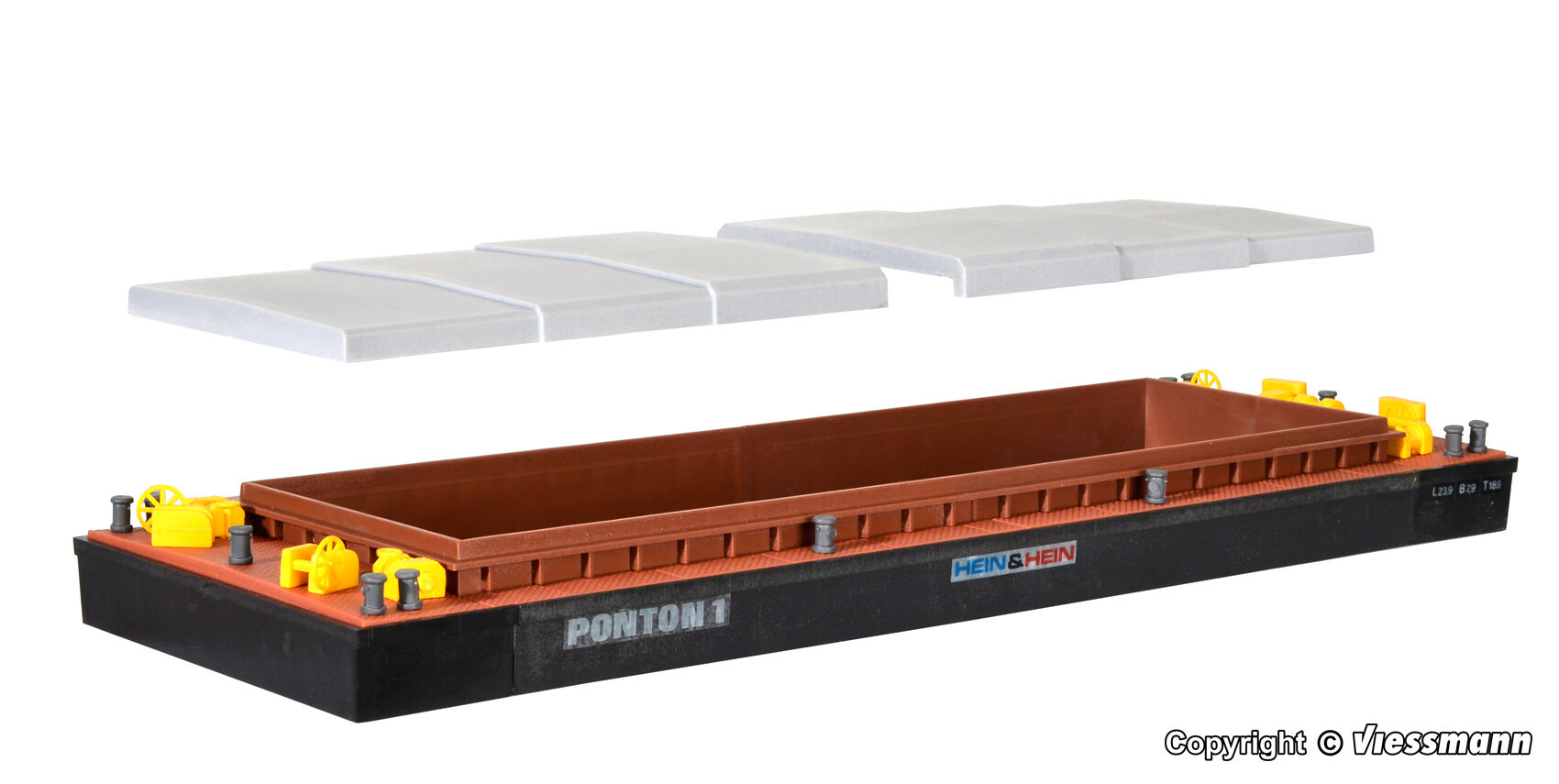 Bausatz. Schubleichter sind unbemannte offene Wasserfahrzeuge, die genormte Größen aufweisen. In der Binnenschifffahrt werden in der Regel 2 oder 4 Leichter zu einem starren Schiffsverband zusammengekoppelt. Ihre Anzahl ist abhängig von der Wasserbreite eines Flusslaufes oder Kanals. Durch seine kastenförmige Form hat der Leichter nur geringen Tiefgang. Mit den beweglichen Rollluken lässt sich die Schiffsladung aus Erz, Sand oder Getreide abdecken, zum Transport von Containern werden die Luken entfernt. Maße: L 28 x B 9 x H 2,8 cm. Schwierigkeitsgrad: 2 (Fortgeschrittene).