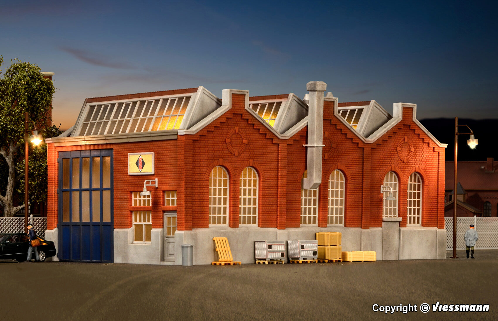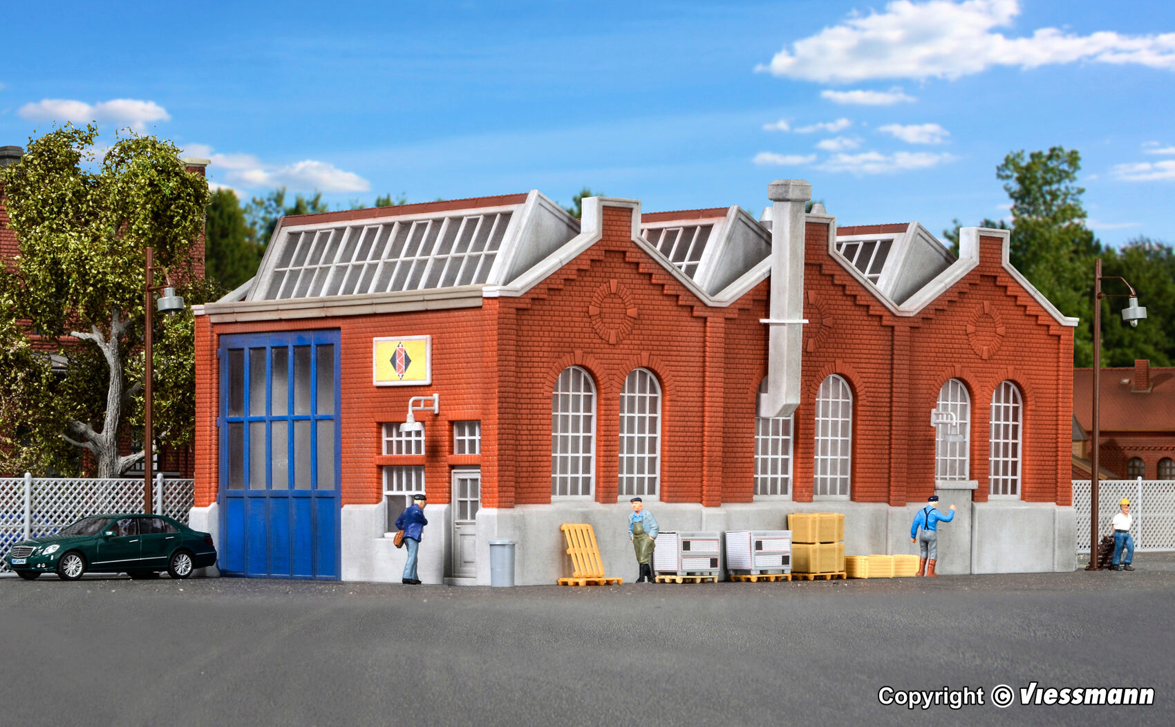 Bausatz. Kennen Sie die Spinnerei H. Zwirn? Durch die kompakten Abmessungen und die liebevoll nachgebildeten Details bietet sich dieser Bausatz auch für kleinere Gewerbegebiete oder für den Einsatz an einem eigenen Verladegleis an. Mit einem zweiten Bausatz ist das Modell verlängerbar. Maße: L 23,5 x B 15 x H 10,5 cm. Schwierigkeitsgrad: 2 (Fortgeschrittene).