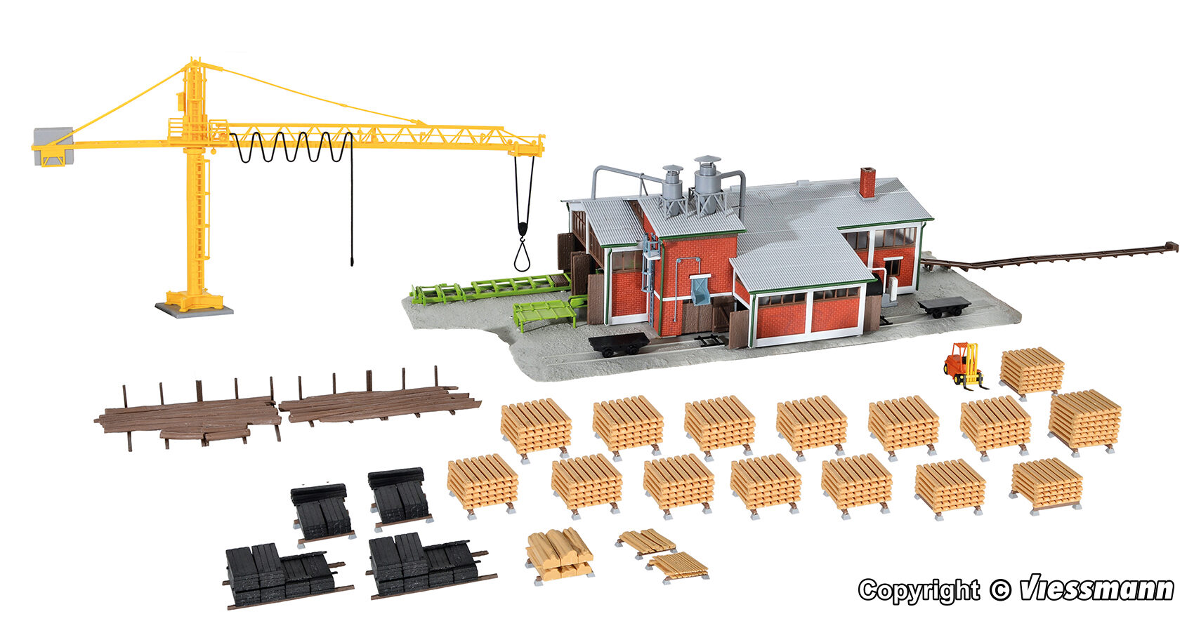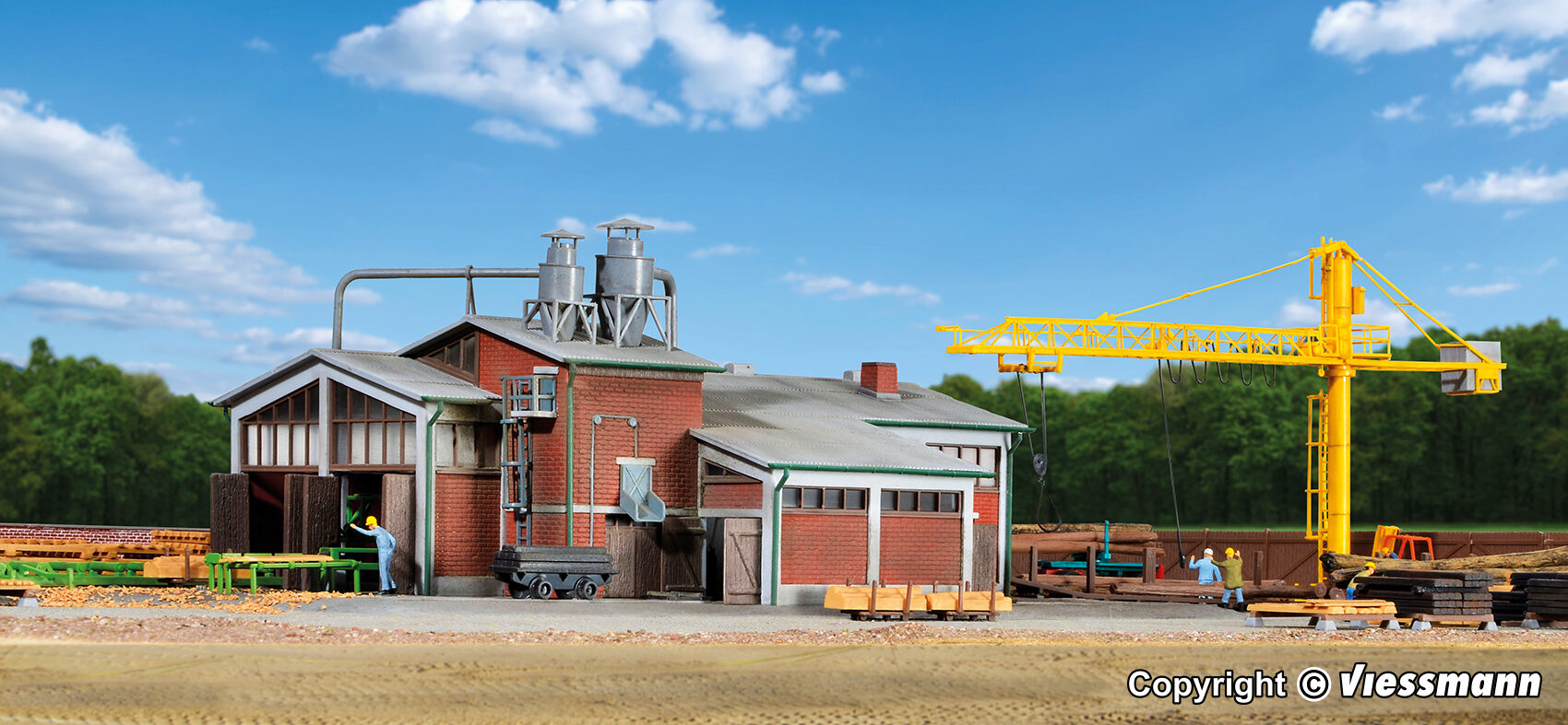 H0 Sägewerk mit Kran, Schwellensäge und Inneneinrichtung