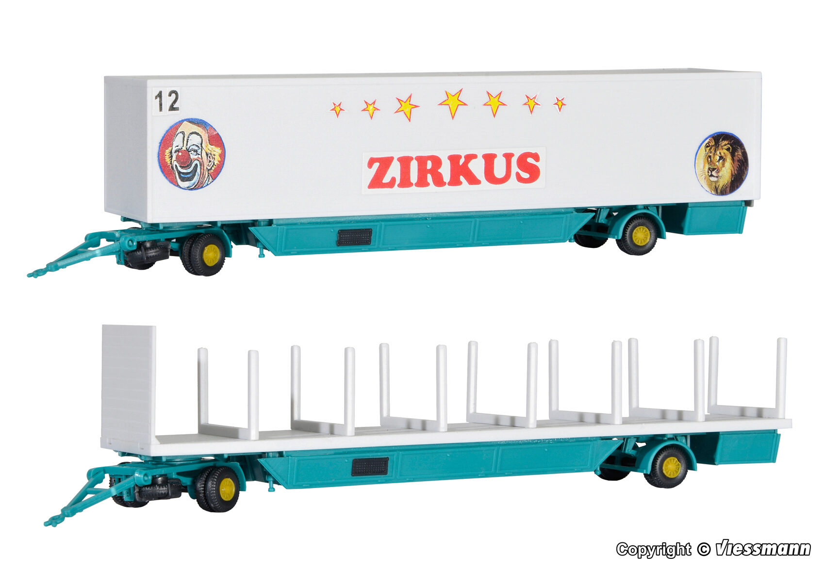H0 Zirkus Zeltstangen- und Kofferanhänger, 2 Stück