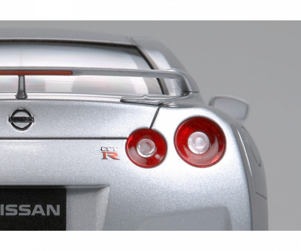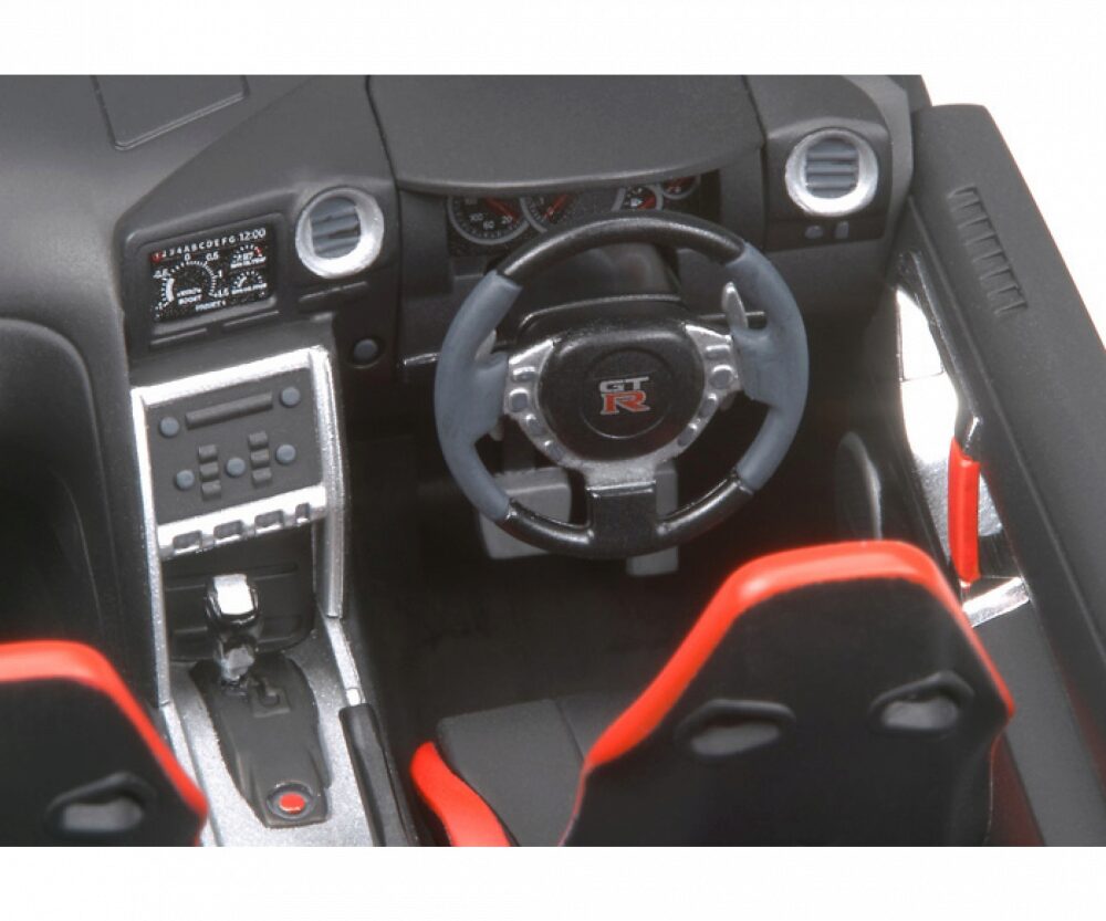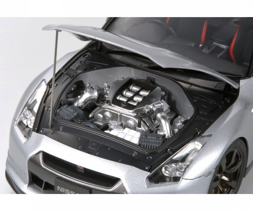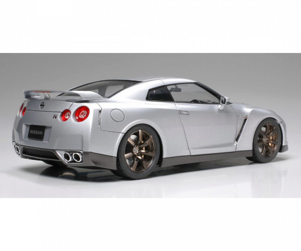 Das Standmodell ist eine Nachempfindung des Nissan GT-R, welcher in der Tokyo Motor Show 2007 vorgestellt wurde. Dieses Modell hatte den Namen Skyline fallen lassen und wurde einfach zum Nissan GT-R. Neben der Namensänderung hatte das Auto auch einige andere mechanische Änderungen, insbesondere unter der Motorhaube. Vorbei ist der Straight Six und an seiner Stelle steht ein neuer Twin-Turbo-V6 mit erstaunlichen 480 PS und 60 kg Drehmoment. Mit erstaunlicher Geschwindigkeit und Kurvenfähigkeit hat der GT-R das Superauto-Plateau erreicht. Die TAMIYA Modellbaukastenversion besticht durch hohe Passgenauigkeit als auch durch Detailtreue.