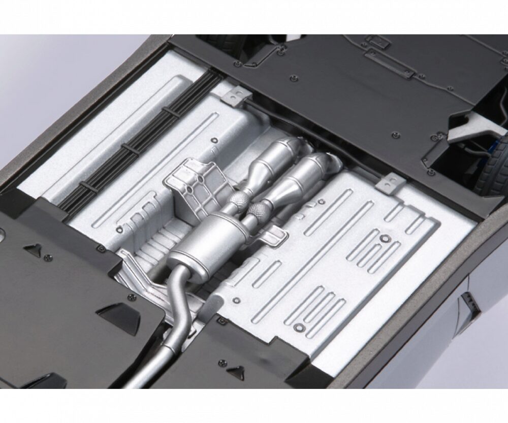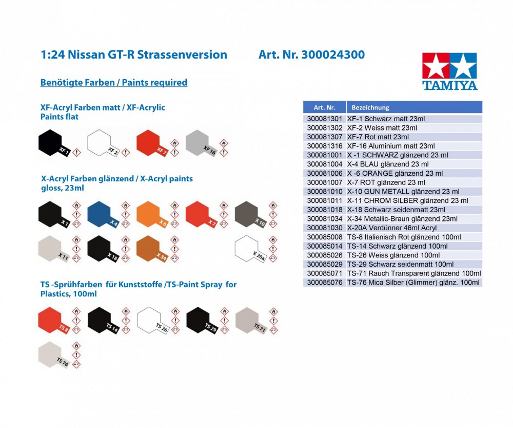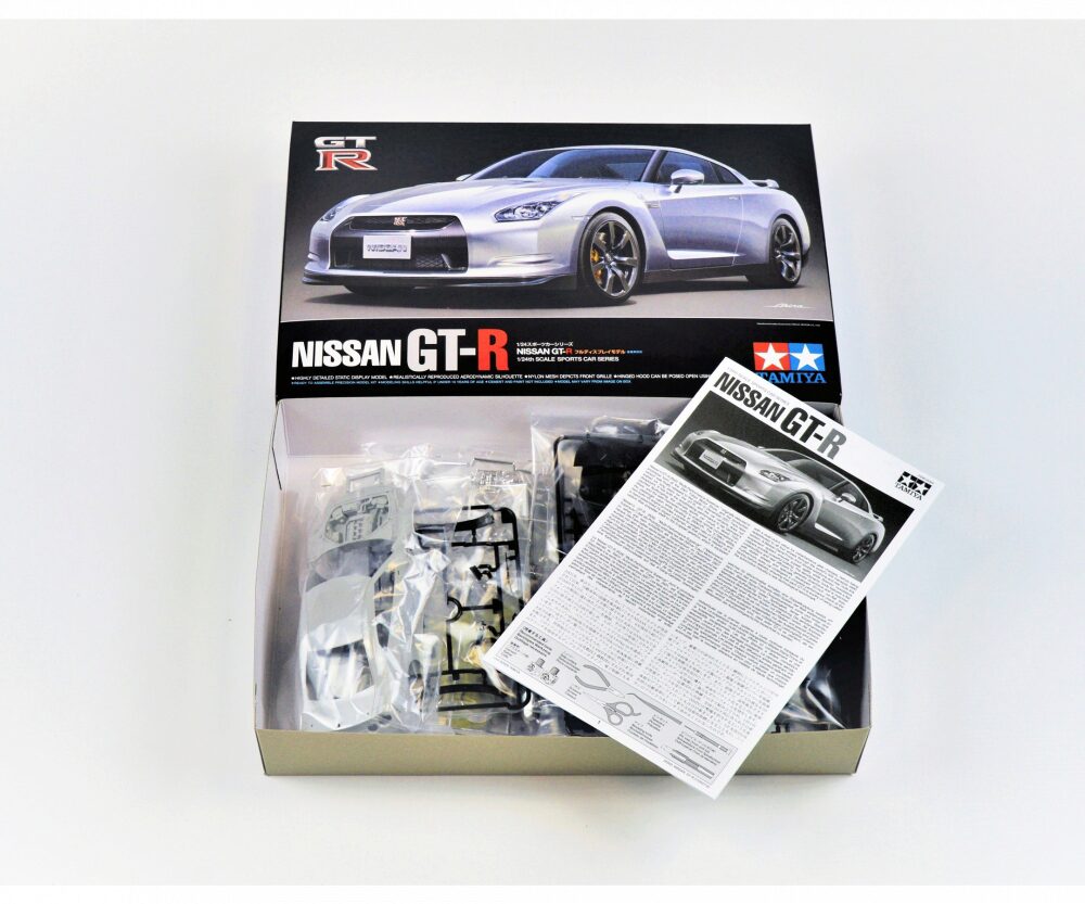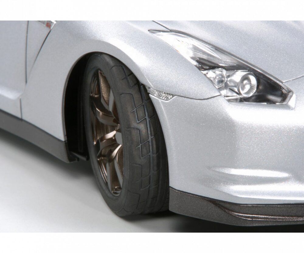 Das Standmodell ist eine Nachempfindung des Nissan GT-R, welcher in der Tokyo Motor Show 2007 vorgestellt wurde. Dieses Modell hatte den Namen Skyline fallen lassen und wurde einfach zum Nissan GT-R. Neben der Namensänderung hatte das Auto auch einige andere mechanische Änderungen, insbesondere unter der Motorhaube. Vorbei ist der Straight Six und an seiner Stelle steht ein neuer Twin-Turbo-V6 mit erstaunlichen 480 PS und 60 kg Drehmoment. Mit erstaunlicher Geschwindigkeit und Kurvenfähigkeit hat der GT-R das Superauto-Plateau erreicht. Die TAMIYA Modellbaukastenversion besticht durch hohe Passgenauigkeit als auch durch Detailtreue.