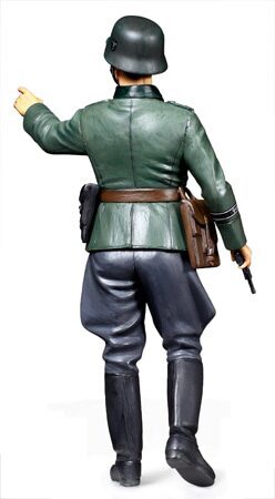Das Standmodell ist eine Nachempfindung eines deutschen Kommandanten, welcher mit einer P38 Pistole ausgestattet ist. Der Offizier hält eine Walther P38-Pistole in der rechten Hand und gibt mit der linken Hand Anweisungen. Der Offizier trägt eine Offiziers-Tunika, eine Reithose, Stiefel sowie einen Helm. Das Eiserne Kreuzmedaillon sowie die Schulter- und Kragenabzeichen sind genau dargestellt. Die P38-Pistole, das Holster und das Kartenetui sind alle detailliert ausgeführt.