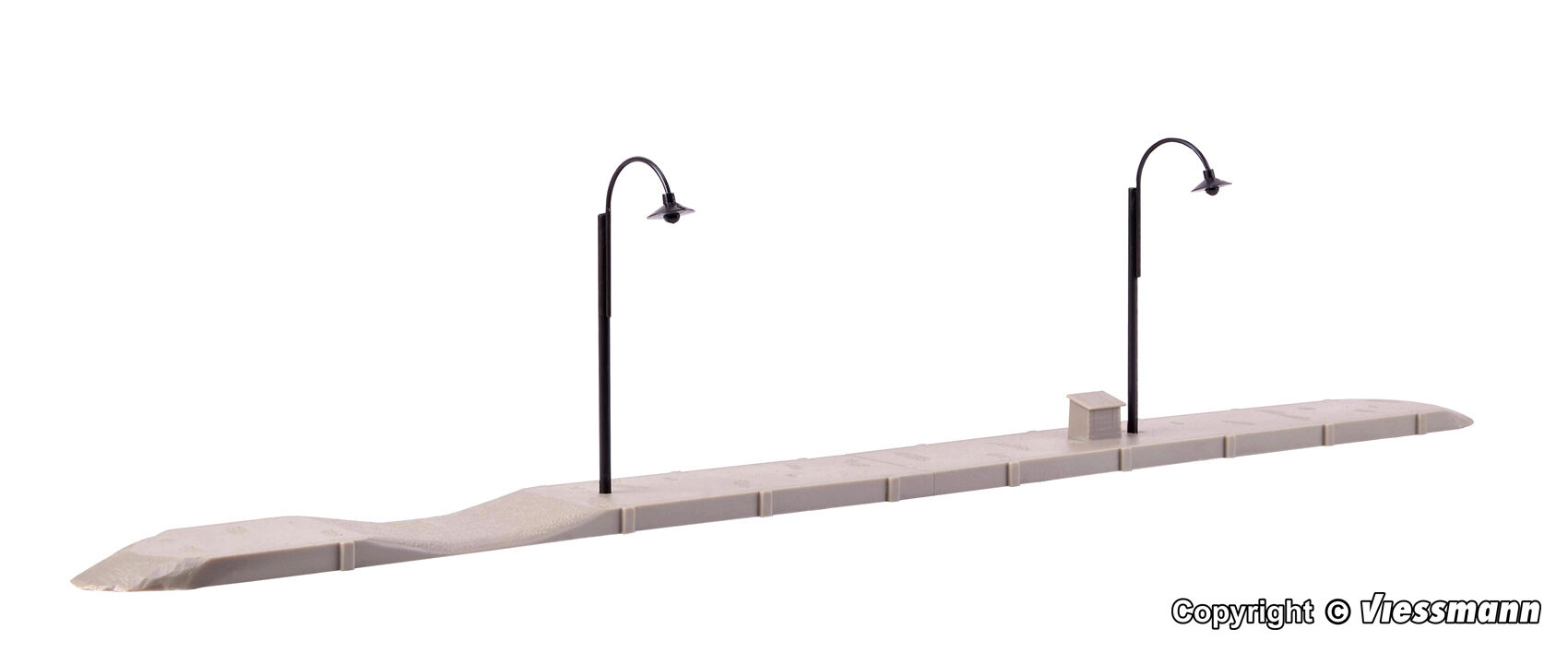 Dieser Bahnsteig passt perfekt zum Bahnhof Neuffen Art. 43510. Maße: L 43,4 x B 3,5 x H 8,5 cm. Bahnsteighöhe: 0,6 cm.