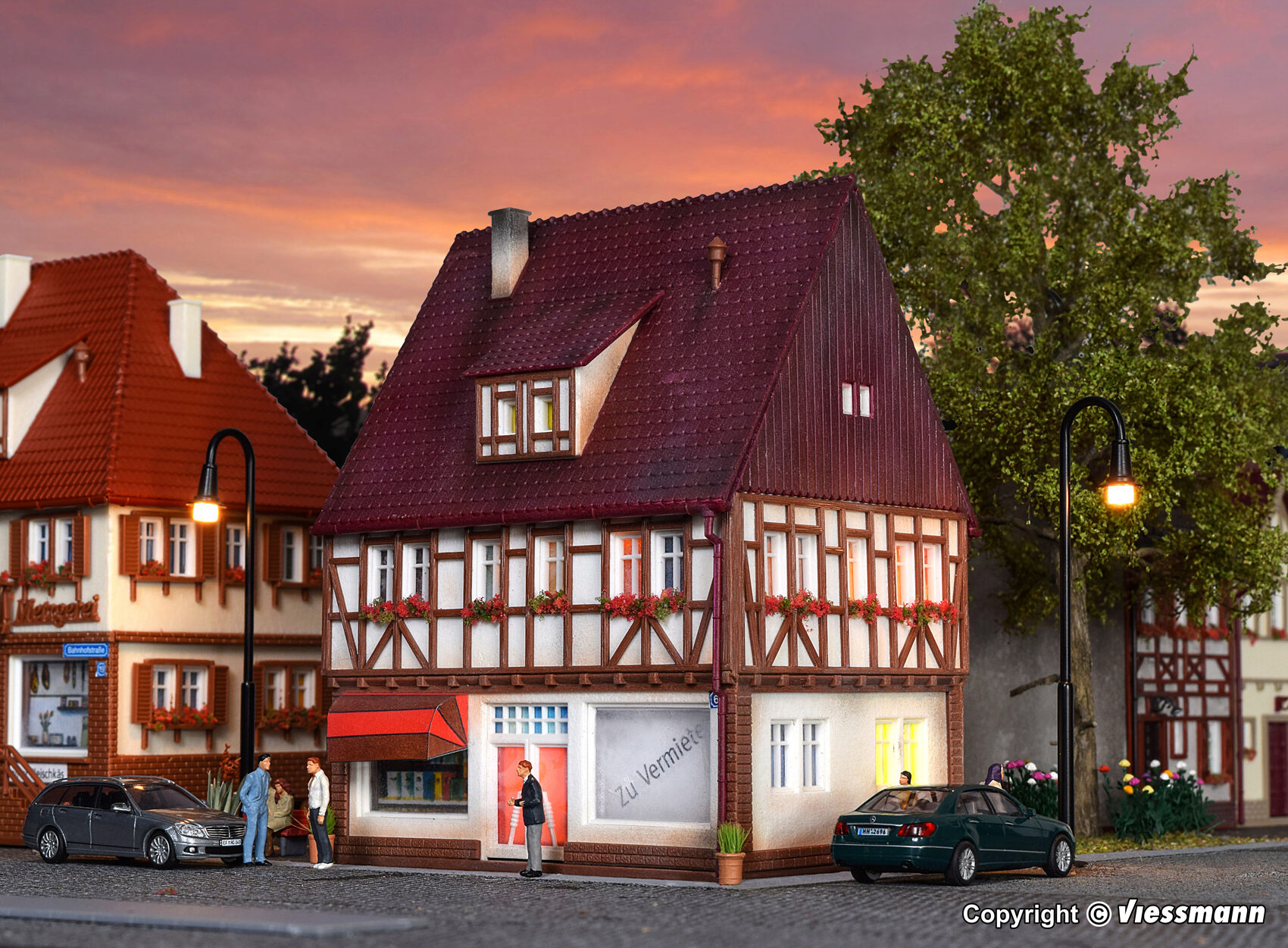 Mit den Bausätzen der Vollmer Bahnhofstraße 9 – 19 können Sie einen kompletten Straßenzug mit Wohn-, Geschäfts- und Fachwerkhäusern gestalten. Bereits mit 4 Bausätzen schaffen Sie sich eine preiswerte und abwechslungsreiche Häuserfront. Maße: L 10 x B 9 x H 13 cm.