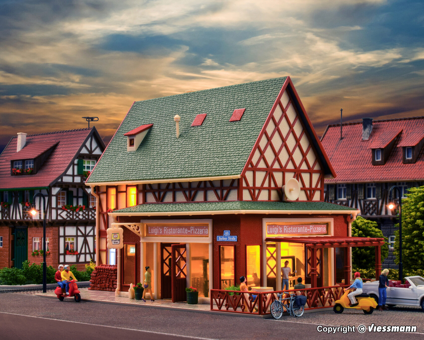 H0 Luigi´s Pizzeria mit Inneneinrichtung, Beleuchtung und Pizza-Rezept, Funktionsbausatz