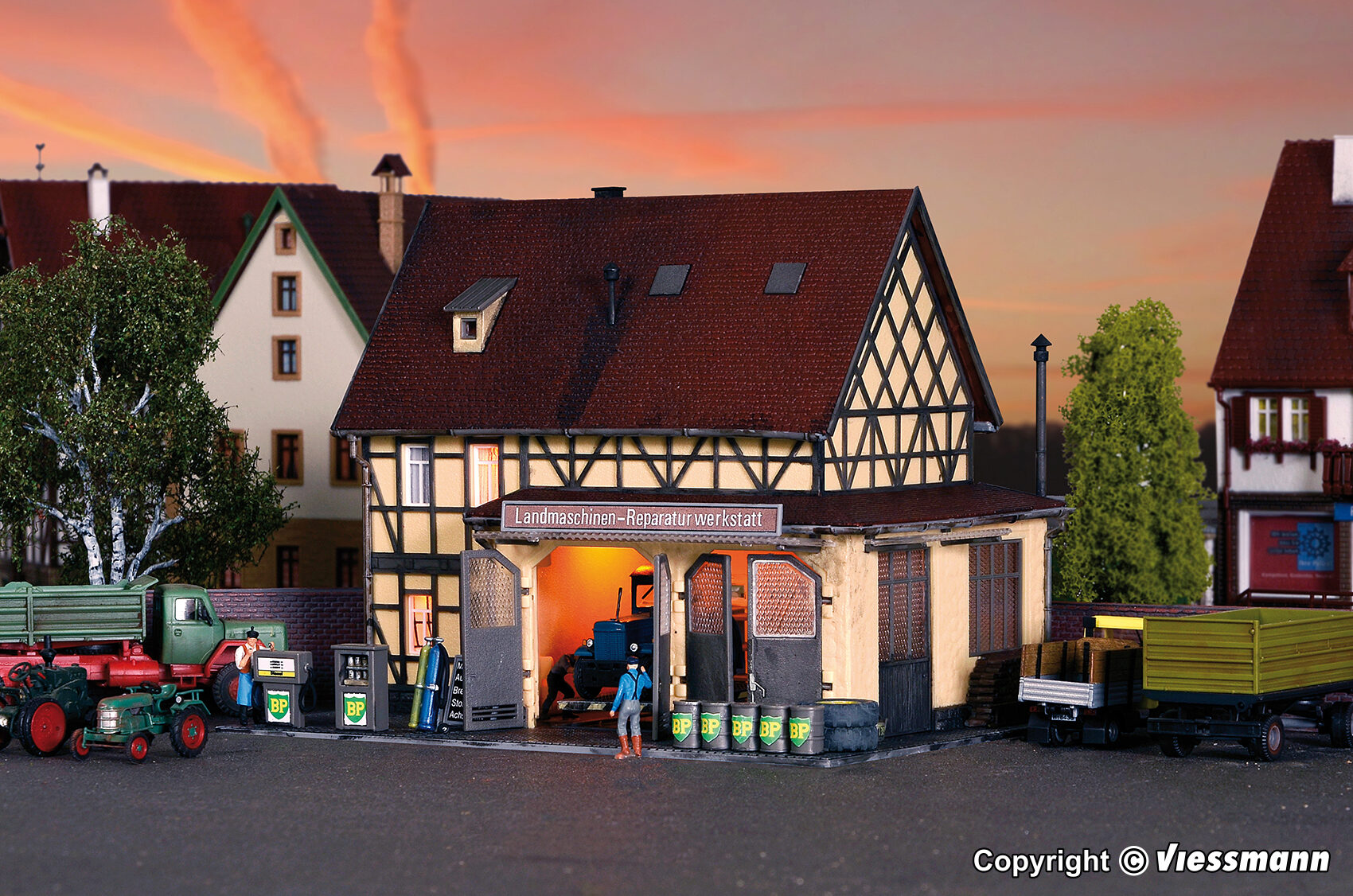 H0 Landmaschinen-Reparaturwerkstatt mit LED-Beleuchtung, Funktionsbausatz