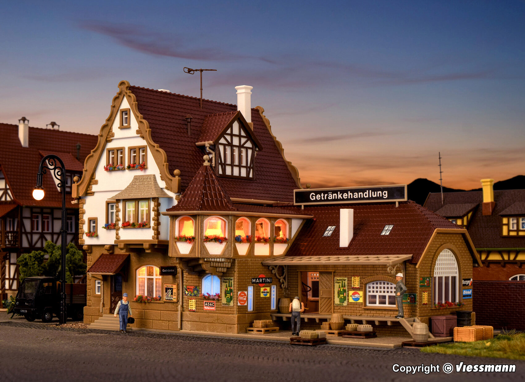 H0 Getränkehandlung mit Inneneinrichtung und LED-Beleuchtung, Funktionsbausatz