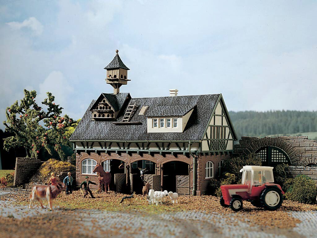 H0 Stall mit Taubenschlag und Pferdeboxen mit abnehmbarem Dach