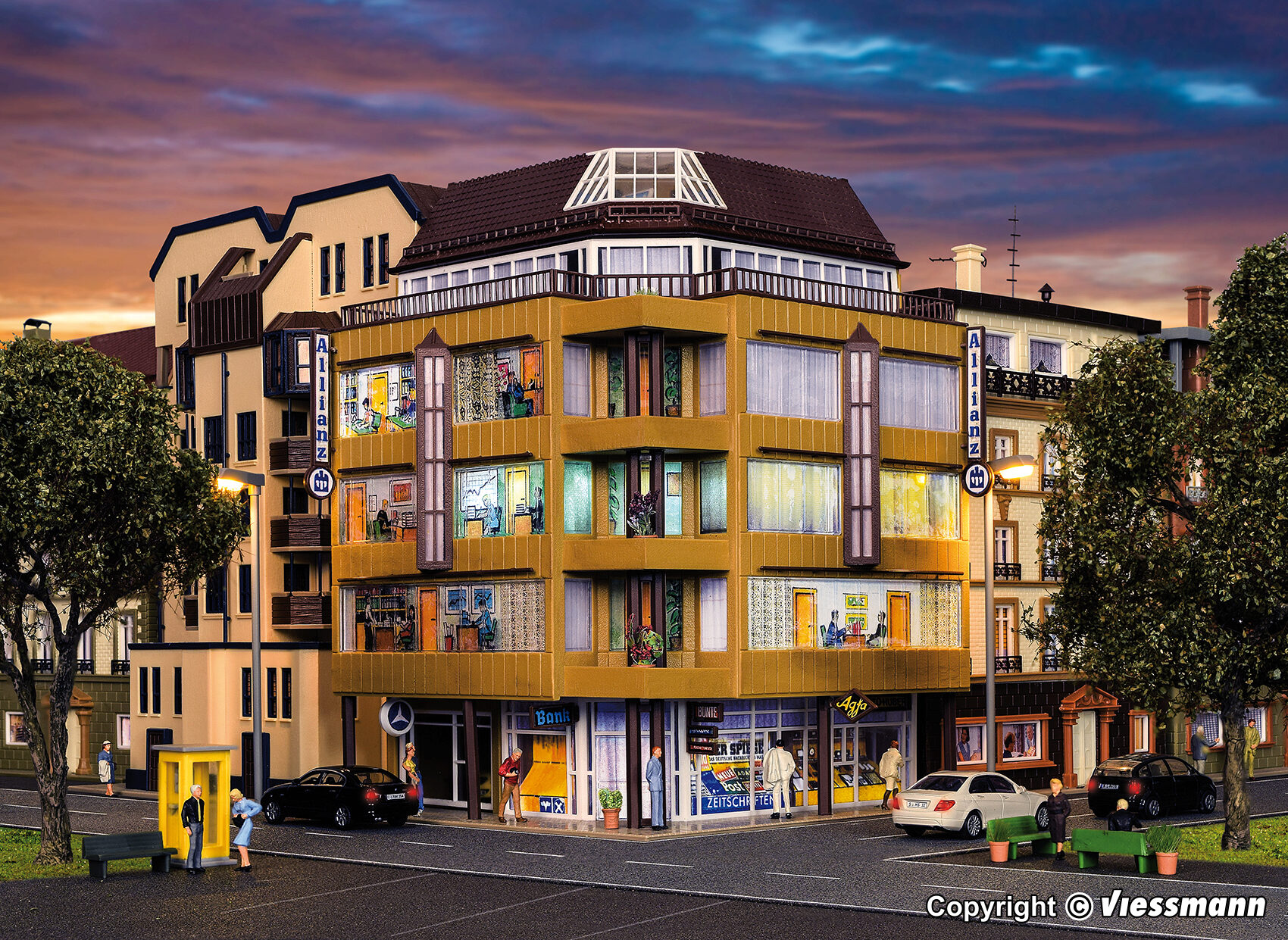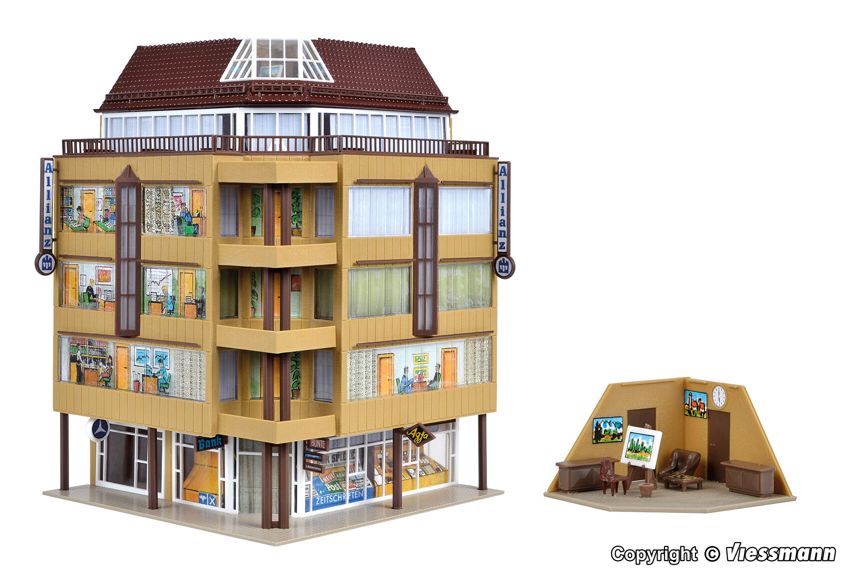 Dieses moderne, mehrgeschossige Eckhaus verfügt über Wohn- und Geschäftsräume. Von der Dachterrasse hat man einen schönen Ausblick und das Atelier unter dem Dach ist liebevoll eingerichtet. Es bietet dem Künstler durch das große Dachflächenfenster viel Tageslicht. Maße: L 14 x B 14 x H 19,5 cm.