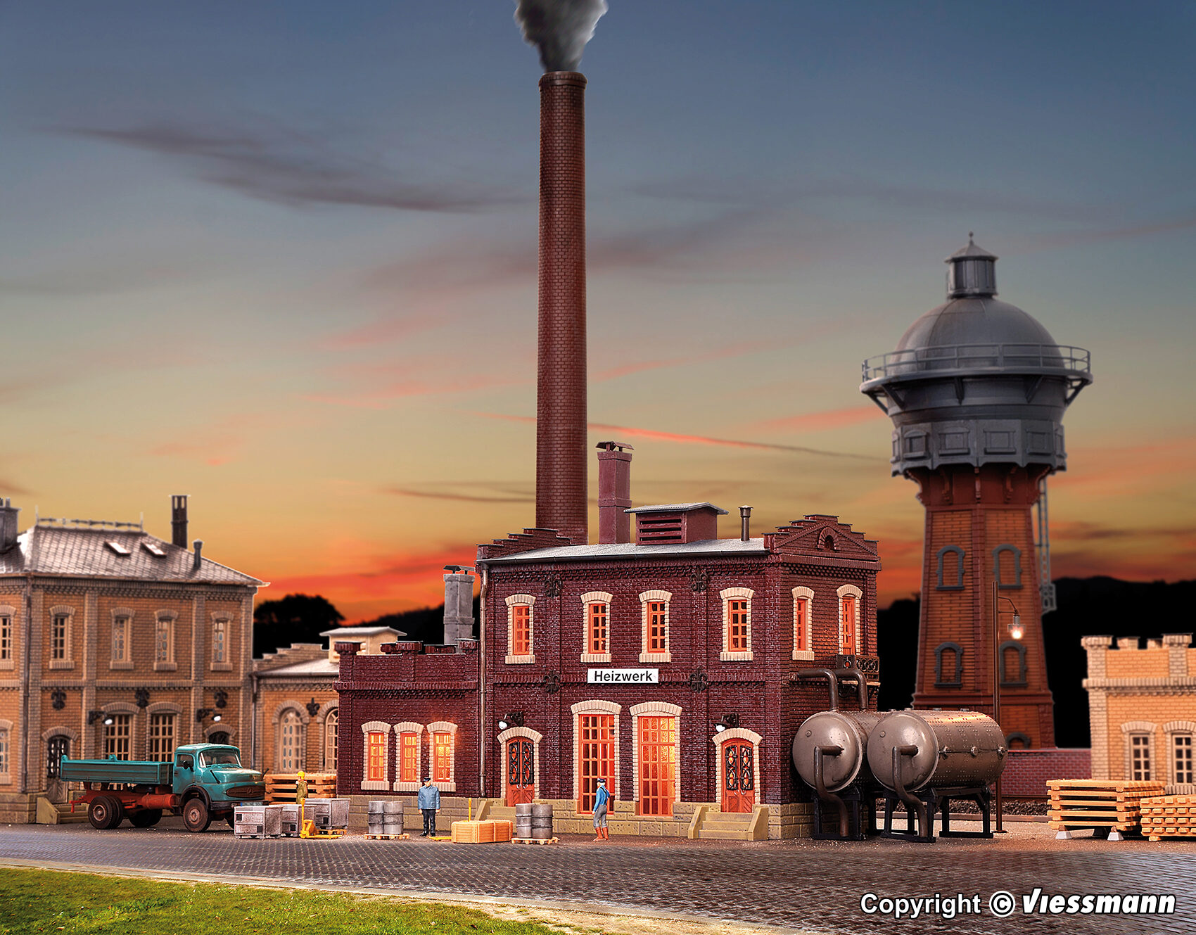 Dieses Industriegebäude im Backstein-Baustil ist eine einzigartige Ergänzung für Industriebereiche auf Ihrer Modellbahnanlage. Dazu passen die Radsatz-Dreherei Art. 45618 und das Werkstattgebäude Art. 45619 im gleichen Baustil. Maße: L 25 x B 12,5 x H 30 cm.