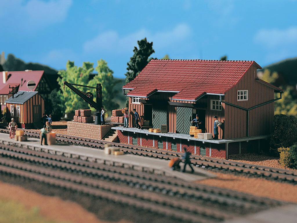 H0 Güterschuppen mit Seitenrampe und Ladekran