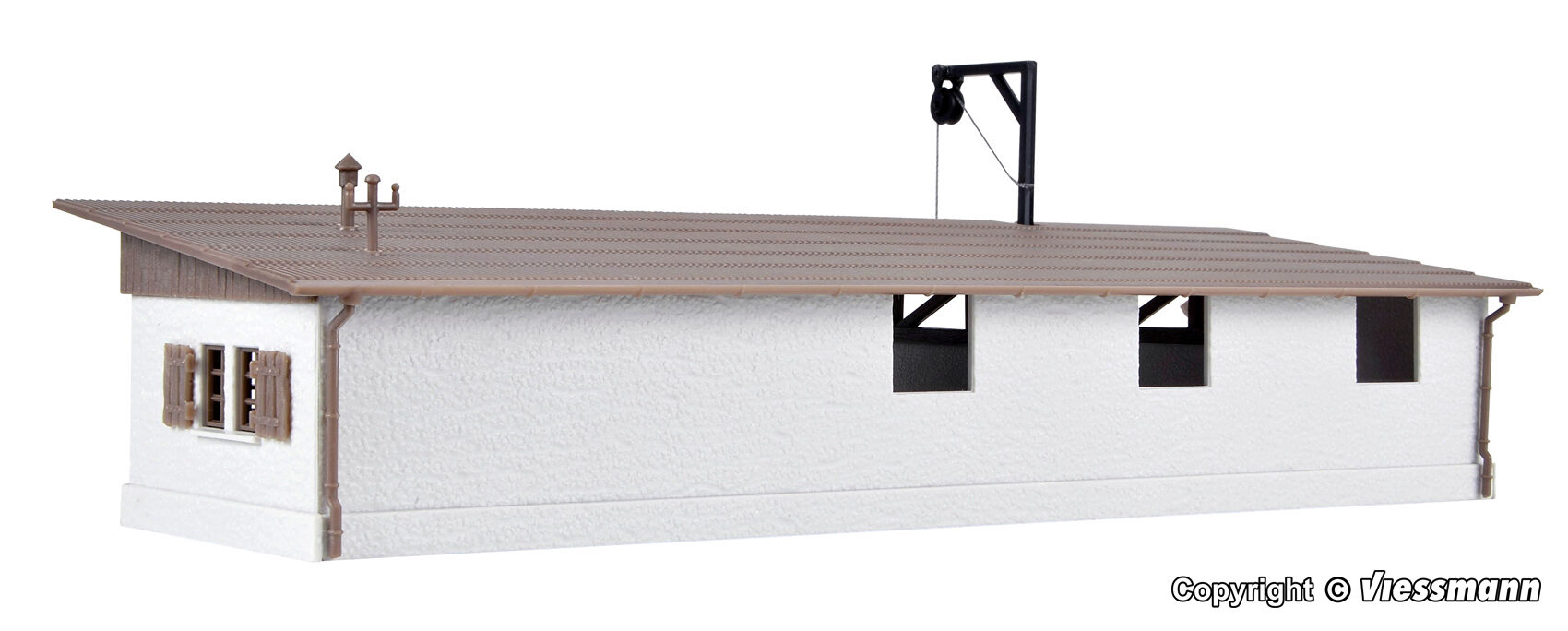 Dieser Schuppen eignet sich zur Lagerung von Schüttgütern, z. B. Kohle. Maße: L 23 x B 10 x H 8 cm.