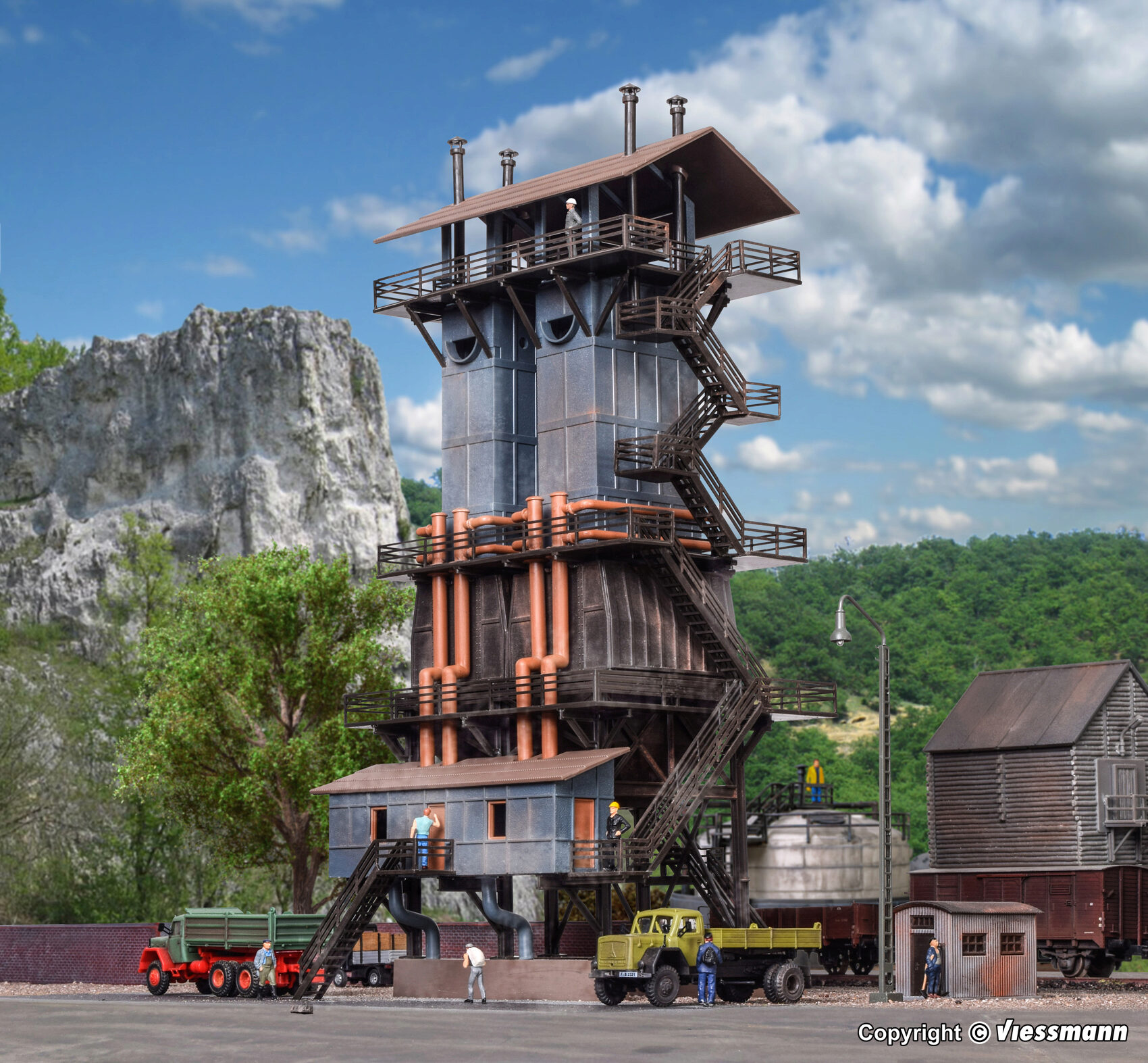 Das Kalkwerk bildet z. B. mit dem Dieseltank Art. 45530 eine interessante Kombination auf der Modellanlage. Zum Brennen des Kalkgesteins ist Energie notwendig. Maße: L 14,5 x B 14 x H 31,5 cm. Durchfahrtshöhe: 6 cm. Durchfahrtsbreite: 5,5 cm