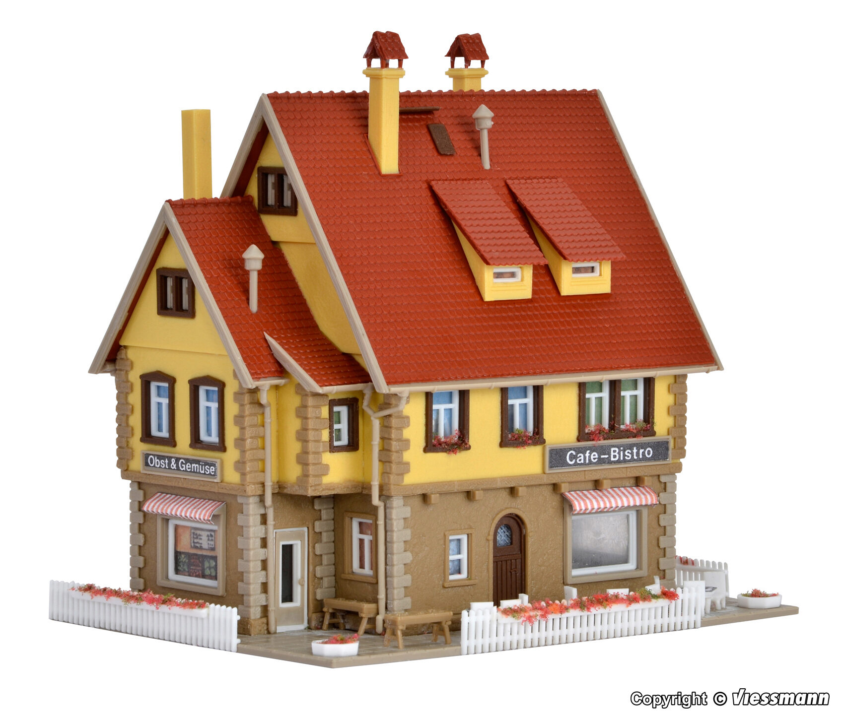 Die beiliegende Beleuchtung setzt den Verkaufsraum mit seinen großen Schaufenstern und der liebevollen Ausstattung ins rechte Licht. Maße: L 11 x B 8,5 x H 10,5 cm.