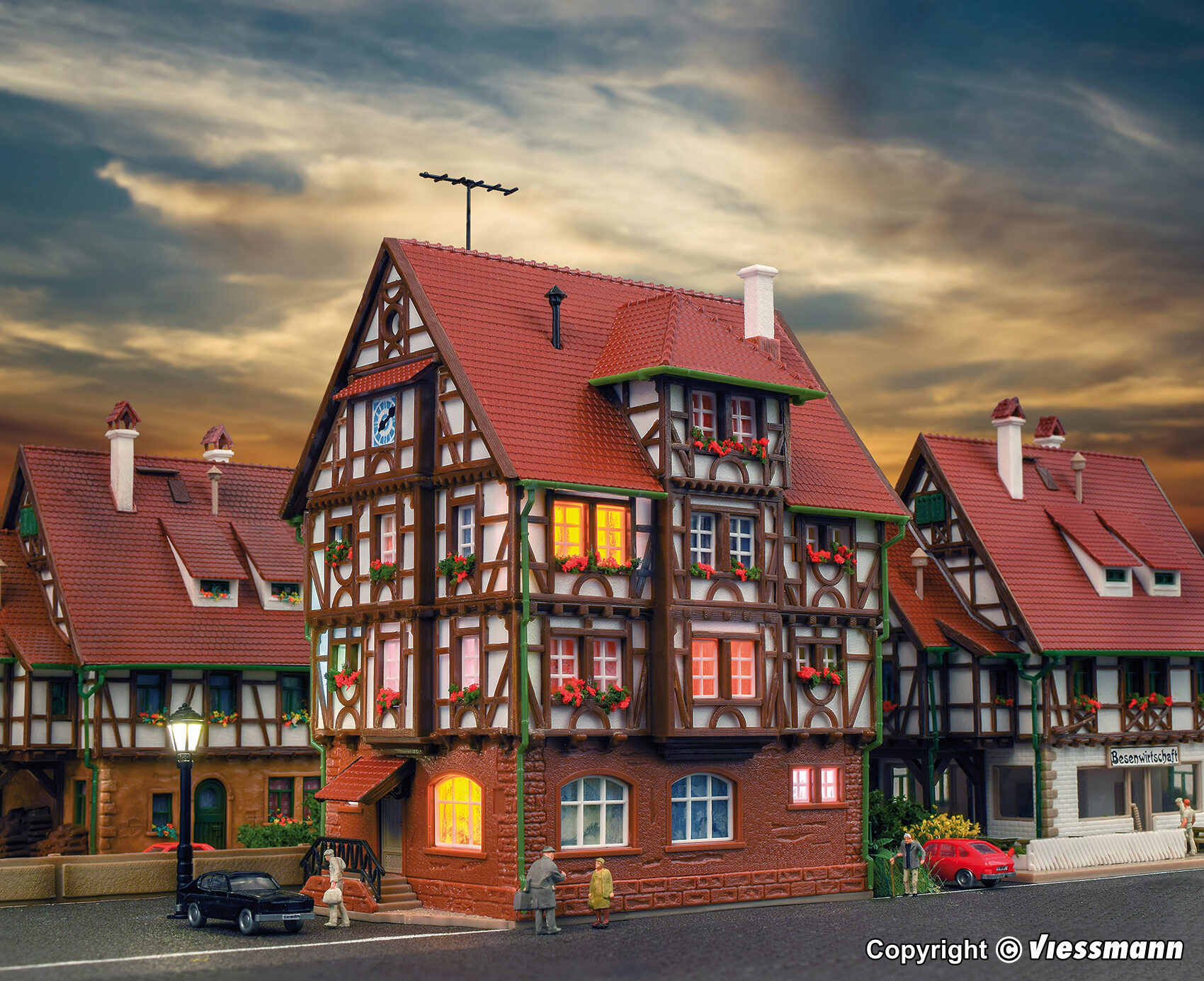 Dieses schöne Fachwerkhaus verleiht Ihrer Innenstadt eine besondere Note. Maße: L 9,7 x B 7,7 x H 12 cm.