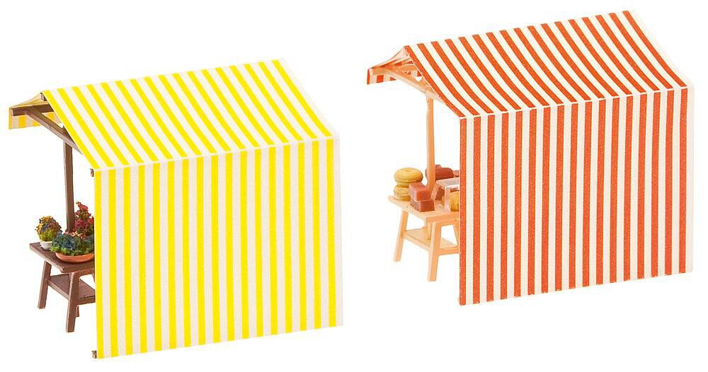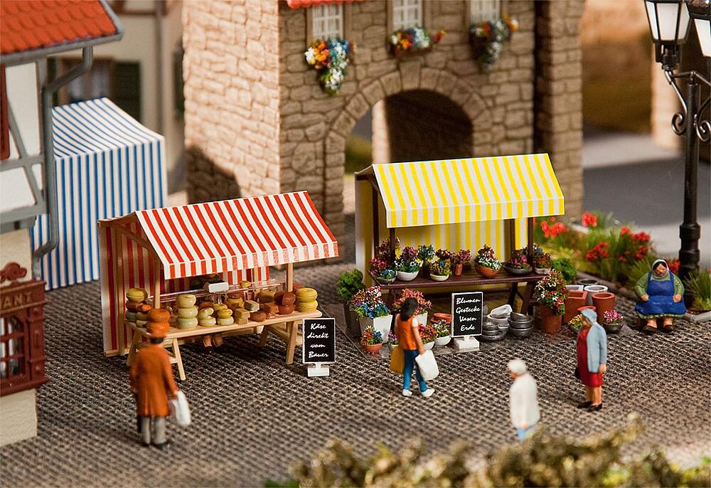 Schön gestaltete Blumen- und Käsestände wie sie auf vielen Wochenmärkten landauf und landab anzutreffen sind. Unterschiedliche Ausgestaltungselemente liegen bei.