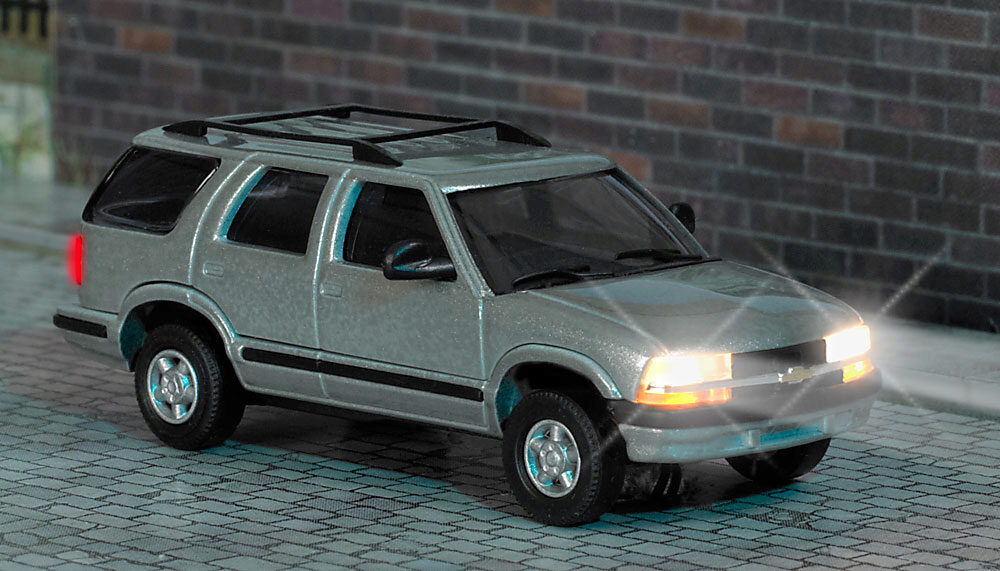 Fahrzeug mit leuchtenden Scheinwerfern und Rückleuchten. Anschlussfertig für 14-16 V.