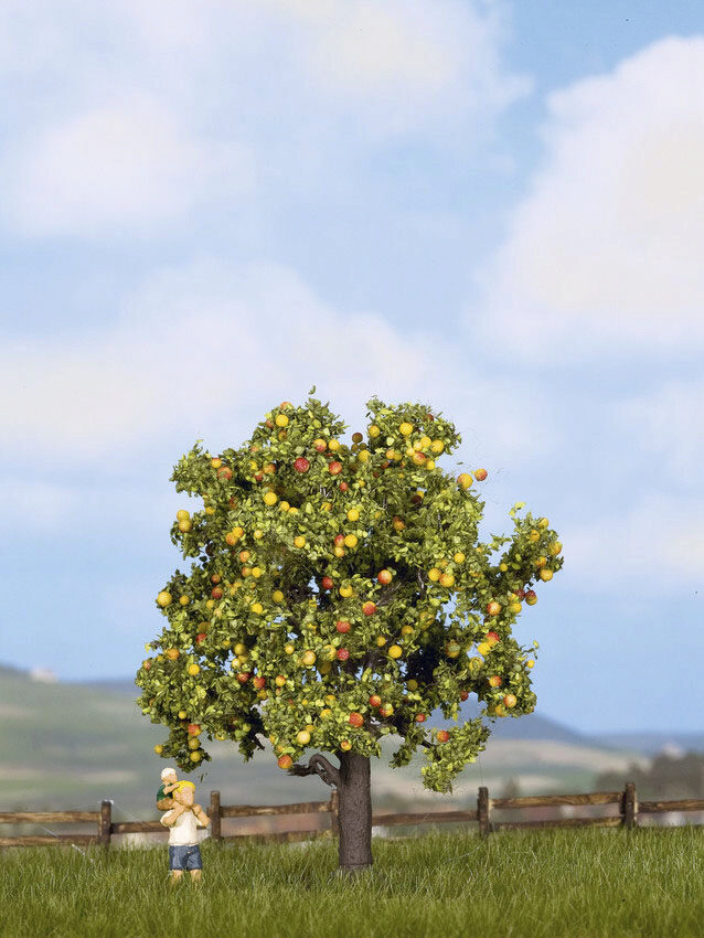 Der NOCH "Apfelbaum mit Früchten" eignet sich ideal dafür, um realgetreue Obstwiesen auf einer Modelllandschaft nachzugestalten. Die knackig roten Früchte geben einer Landschaft wunderschöne Farben, die so richtig den Sommer einstimmen lassen. Ob auf der weiten, grünen Obstwiese oder zuhause im eigenen Garten - der "Apfelbaum mit Früchten" lässt jede Landschaft noch idyllischer und wirklichkeitsgetreuer aussehen lassen. Die Menschen genießen die warmen Temperaturen in der Natur. Da darf ein roter, knackiger Apfel direkt vom Baum nicht fehlen! Hier ist sommerliche Stimmung garantiert. Bringen Sie diese liebevolle Szene mit auf Ihre Modelllandschaft.
