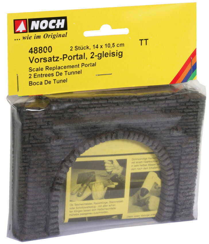 Vorsatz-Portale dienen dazu, Tunneleinfahrten größerer Spurweiten auf das Maß einer kleineren Spurweite zu reduzieren. Dies ist beispielsweise bei der Verwendung eines NOCH H0-Fertiggeländes in Spur TT notwendig. Alle Vorsatz-Portale sind für Oberleitungen geeignet.