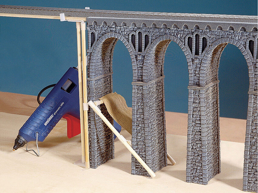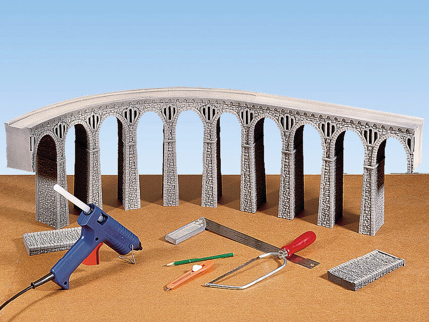 Um besonders lange und imposante Brückenbauwerke zu erbauen, können gerade und gebogene Bruchsteinviadukte beliebig kombiniert werden.