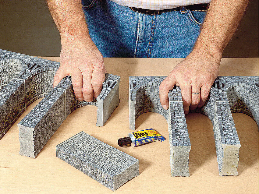 In der Verpackung des "Bruchsteinviaduktes" finden Sie das Viadukt und das Material, um den passenden Brückenkopf zu basteln.