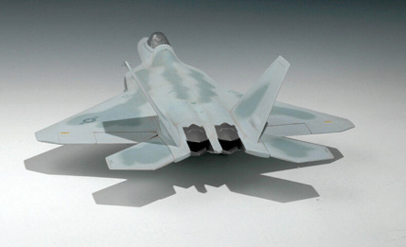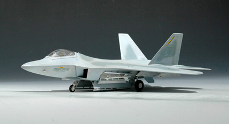 Plastikmodellbausatz eines US-amerikanischen Kampfjets aus den 1990er Jahren mit 130 Teilen. Markierung der US Air-Force. Länge gebaut: 291,3 mm / Flügelspannweite: 188,5 mm.
