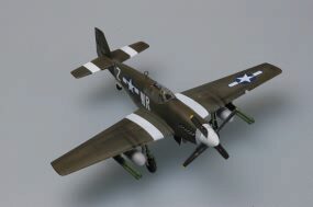 Plastikmodellbausatz eines US-amerikanischen WWII Langstreckenjägers mit 41 Teilen und Metallpropeller. Zwei Markierungen der US-Luftwaffe möglich. Länge gebaut: 135,4 mm / Flügelspannweite: 157,5 mm / Höhe: 35 mm.