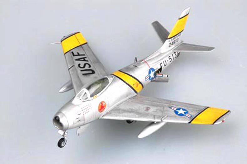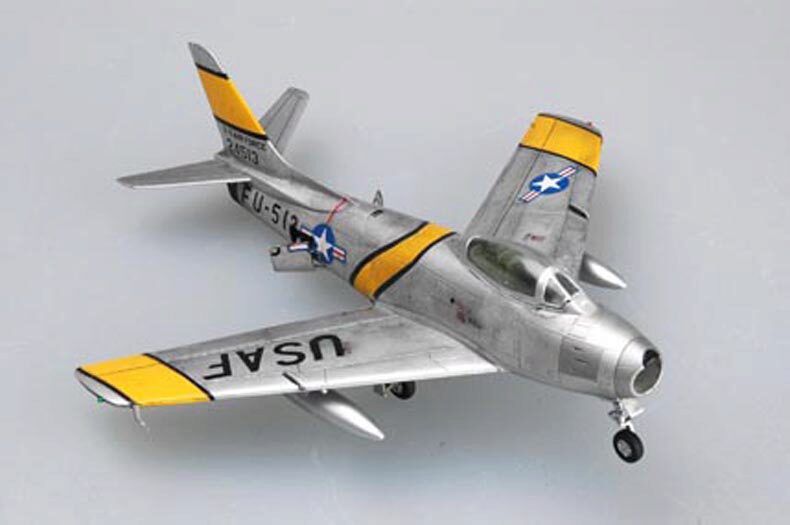 Plastikmodellbausatz eines US-amerikanischen Kampfjets aus den 1950er Jahren mit 31 Teilen. Markierungen der US-Airforce und der südafrikanischen Luftwaffe. Länge gebaut: 153 mm / Breite: 165 mm / Höhe: 59 mm.
