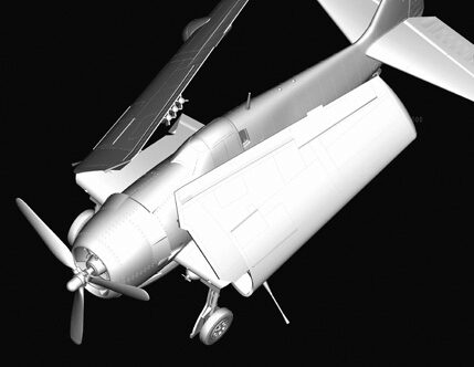 Plastikmodellbausatz eines US-amerikanischen WWII Trägerflugzeugs mit 121 Teilen. Markierungen der US Air-Force. Länge gebaut: 213,3 mm / Flügelspannweite: 272 mm.