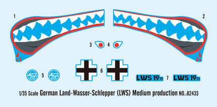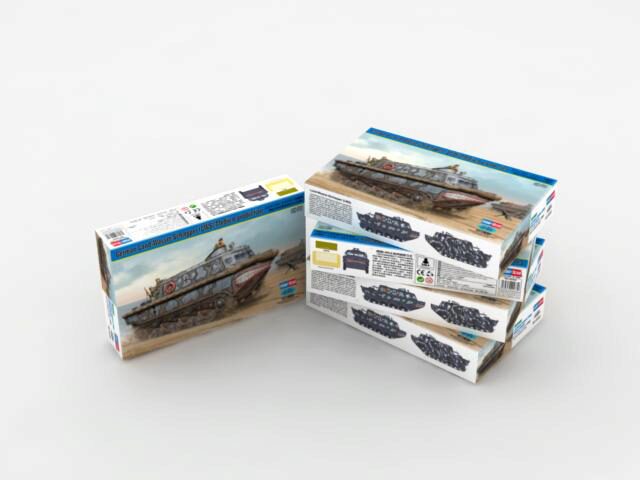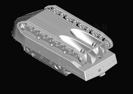 Plastikmodellbausatz eines deutschen WWII gepanzerten Amphibien-Fahrzeugs mit über 600 Teilen und Photoätzteilen. Länge gebaut: 250 mm / Breite: 101 mm / Höhe: 67,7 mm.