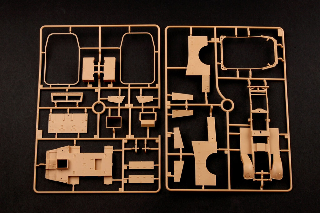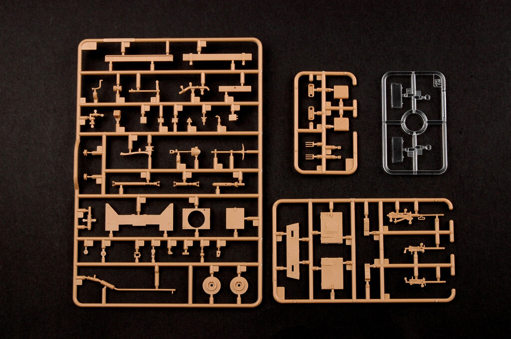 Plastikmodellbausatz eines US-amerikanischen Militärfahrzeugs aus den 1930er Jahren mit über 240 Teilen und Photoätzteilen. Länge gebaut: 172 mm / Breite: 74 mm.