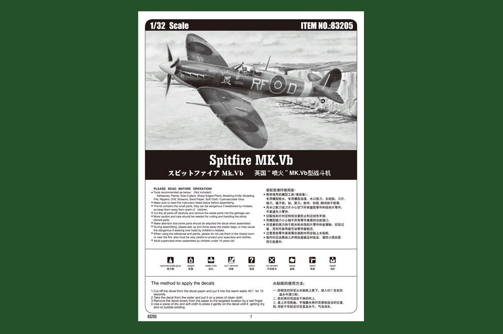 Plastikmodellbausatz eines britischen WWII Kampfflugzeugs mit über 240 Teilen und Photoätzteilen. Länge gebaut: 284 mm / Flügelspannweite: 350,3 mm.