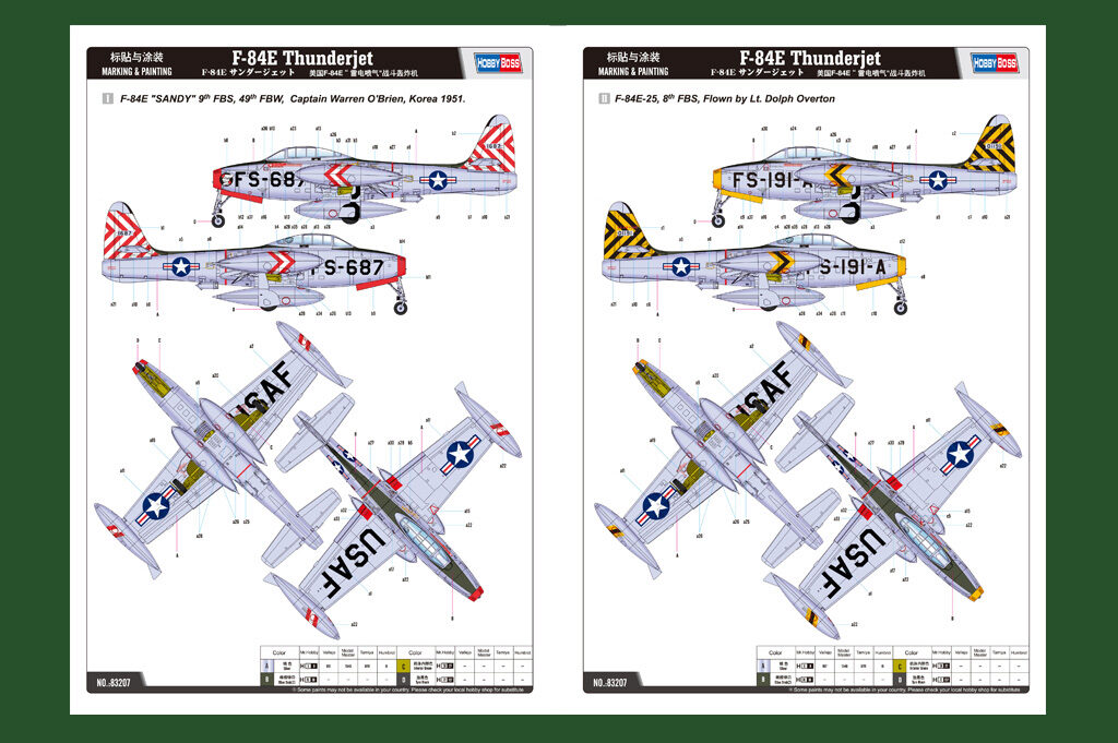 | Camouflage Scheme | 1. F-84E SANDY 9th FBS, 49th FBW, Korea 1951 2. F-84E-25, 8th FBS, Flown by Lt. Donald James. 1951 |