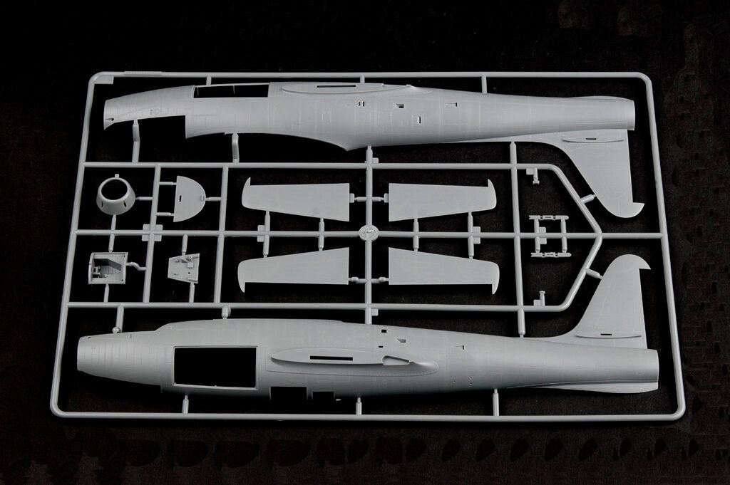 Plastikmodellbausatz eines US-amerikanischen Kampfjets der 1950er Jahre mit über 280 Teilen, Metallteilen und Photoätzteilen. Zwei Markierungen der US-Airforce sind möglich. Länge gebaut: 362,5 mm / Flügelspannweite: 393,8 mm.